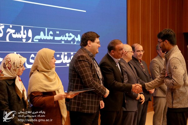 در بخش تقدیر از پژوهشگران برتر عضو هیأت علمی از دکتر نرجس بحری، دکتر جلال مردانه، دکتر موسی سجادی و دکتر احمد زارعی به ترتیب به عنوان پژوهشگر برتر هیأت علمی دانشکدههای پزشکی، پیراپزشکی، پرستاری و بهداشت تقدیر شد.